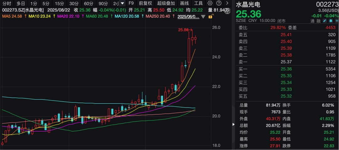 光学重点公司水晶光电本周迎来224家机构线上调研。