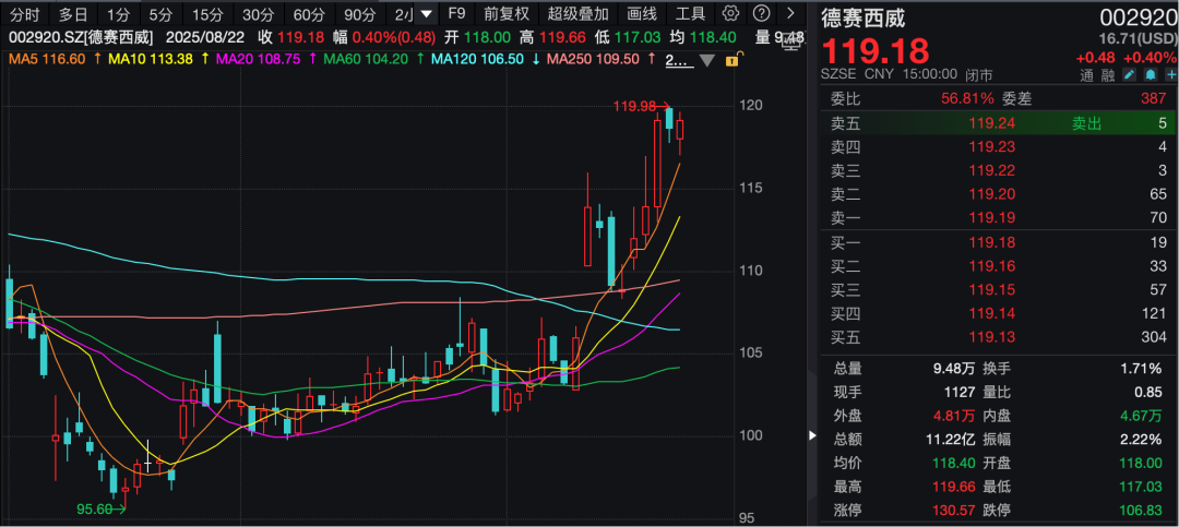 根据该公司周内披露的半年报,2025年上半年,德赛西威实现营业总收入146.44亿元,同比增长25.25%;归母净利润12.23亿元,同比增长45.82%。