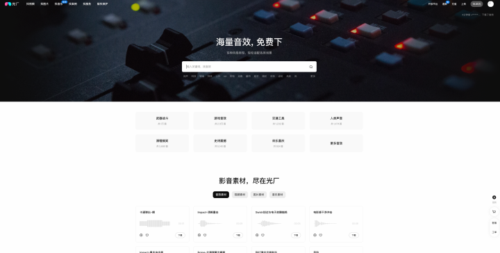 专为短视频创作优化,界面简洁直观,分类聚焦短视频高频场景,如转场音效、UI交互音、背景音乐片段等,无需复杂检索即可快速找到所需素材。平台支持“短视频时长适配”筛选,可直接锁定15秒、30秒等适配短视频的音效片段,大幅降低剪辑门槛;所有素材均经过后期优化,底噪低、音量均衡,下载后可直接使用,无需额外后期处理。