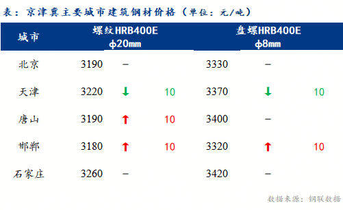 价格方面,今日京津冀建材市场价格整体小幅震荡,市场交投氛围一般,预计近日价格仍持稳运行。