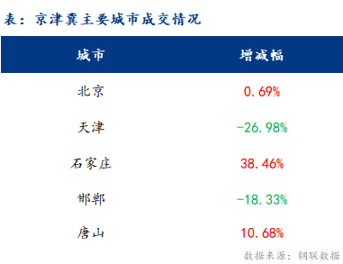 今日京津冀建材市场成交较昨日小幅减量,成交分化,减量主要在天津、邯郸区域,增量主要集中在石家庄区域;据统计,主要城市成交量较昨日减少4.02%。